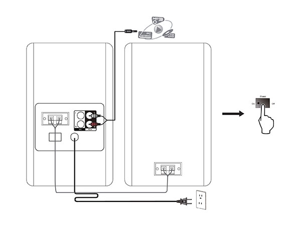 כלול בערכה כבל 2RCA-2RCA וכבל 2RCA ל PL-3.5 המאפשרים חיבור מקור אודיו לרמקולים.