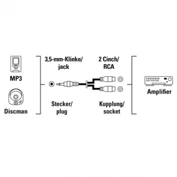 כבל אודיו מתאם מחיבור PL-3.5mm סטריאו זכר ל-2RCA נקבה - HAMA