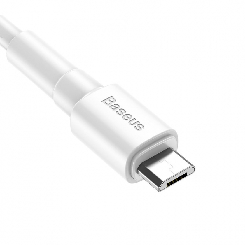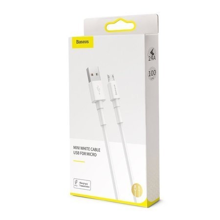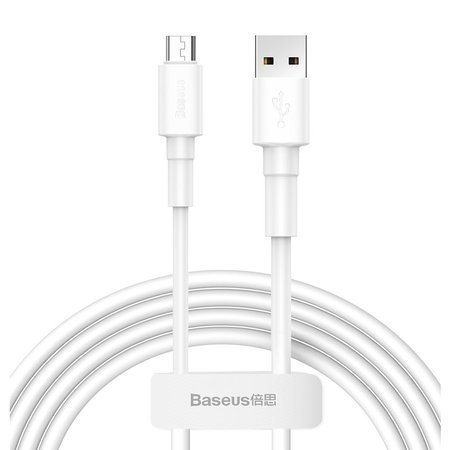כבל לבן באורך 1 מטר עם חיבור USB לחיבור micro USB.