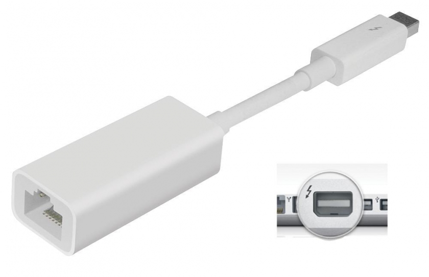 חיבור Thunderbolt לחיבור רשת קווי Gigabit LAN RJ45.