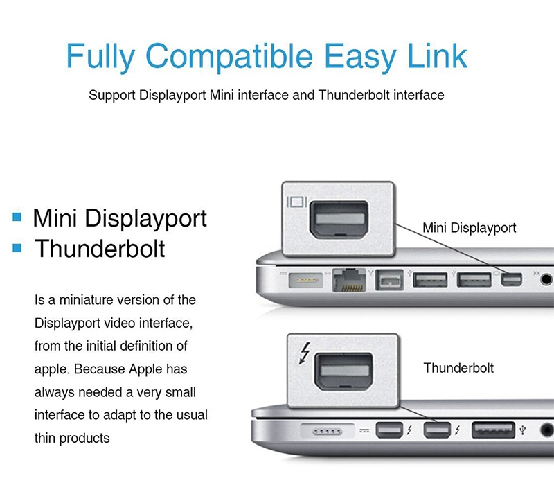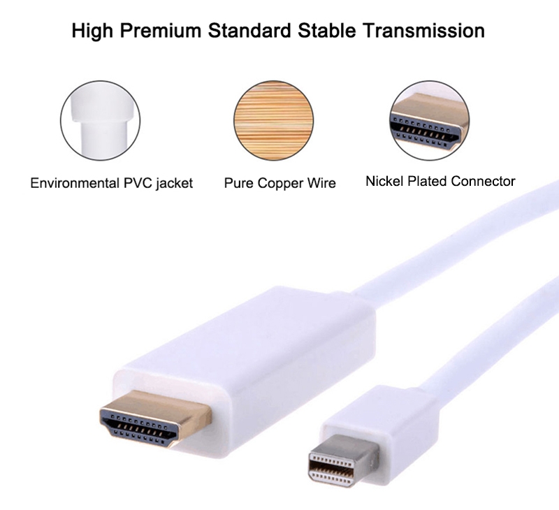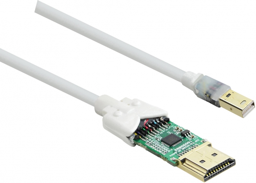 בצידו האחד של הכבל חיבור mini DisplayPort זכר, במיועד לחיבור למחשב,