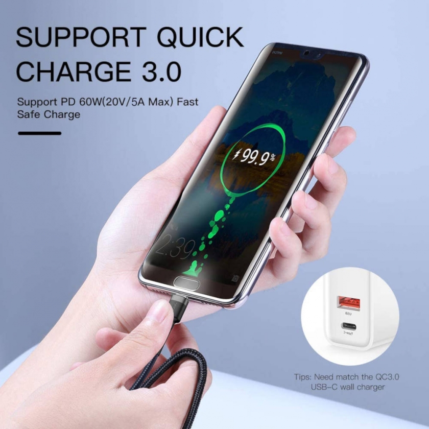הכבל תומך בטכנולוגיית Quick Chatge 3.0