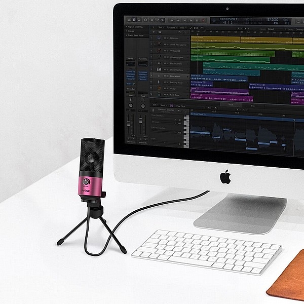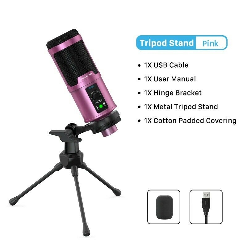 המיקרופון כולל חצובה שולחנית, כבל USB וספוגית.