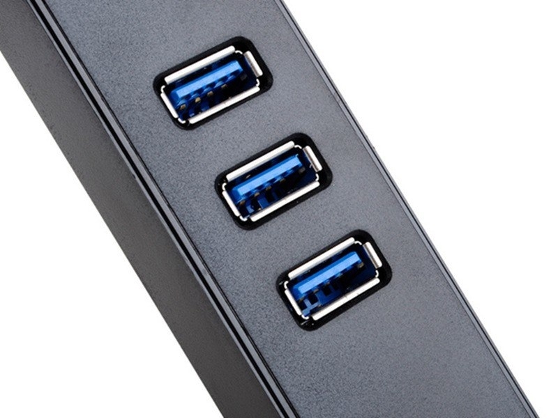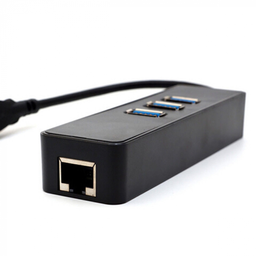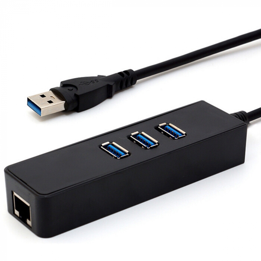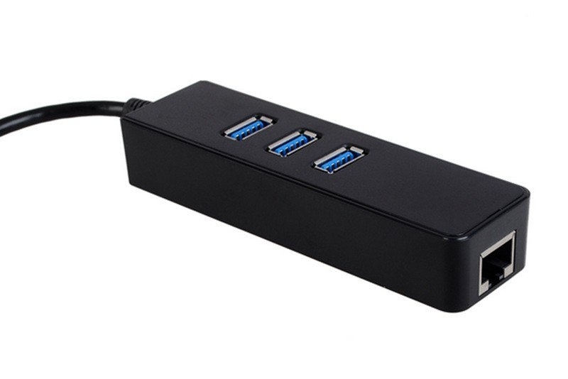 מרכזיית USB-3.0 עם 3 חיבורי USB וחיבור רשת קווי מהיר.