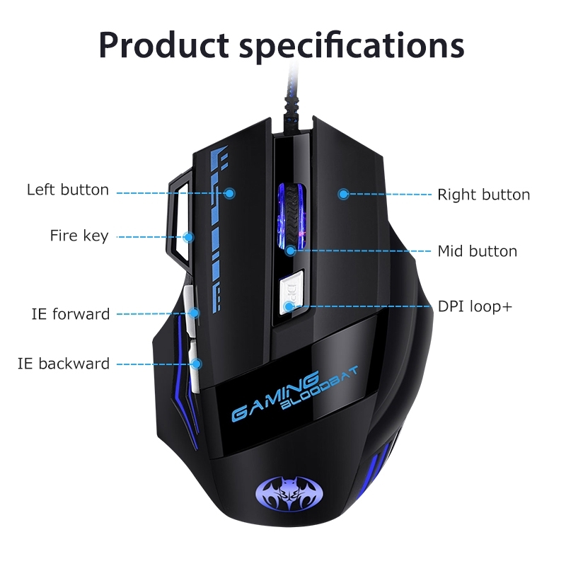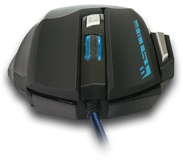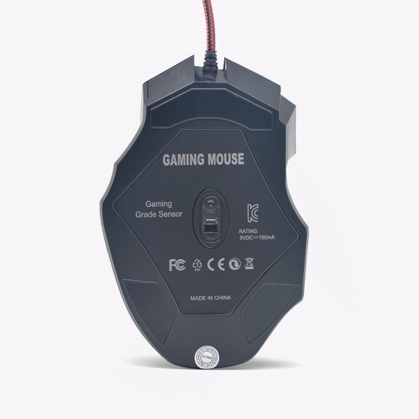עכבר גיימינג מואר בחיבור כבל USB למחשב.