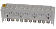 פס קרונה עם מקום ל-10 נתיכים מגני ברקים ומתח יתר.