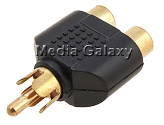 בצידו האחד חיבור RCA זכר ובצידו השני שני חיבורי RCA נקבה.