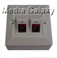 שקע כפול RJ45 מסוכך CAT5e בחיבור משופע עם קופסא על הטיח.