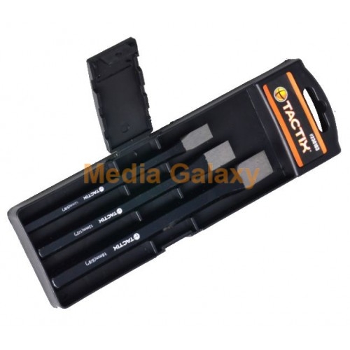 ערכה הכוללת 3 איזמלים מפלדה עם קופסת אחסון תואמת.